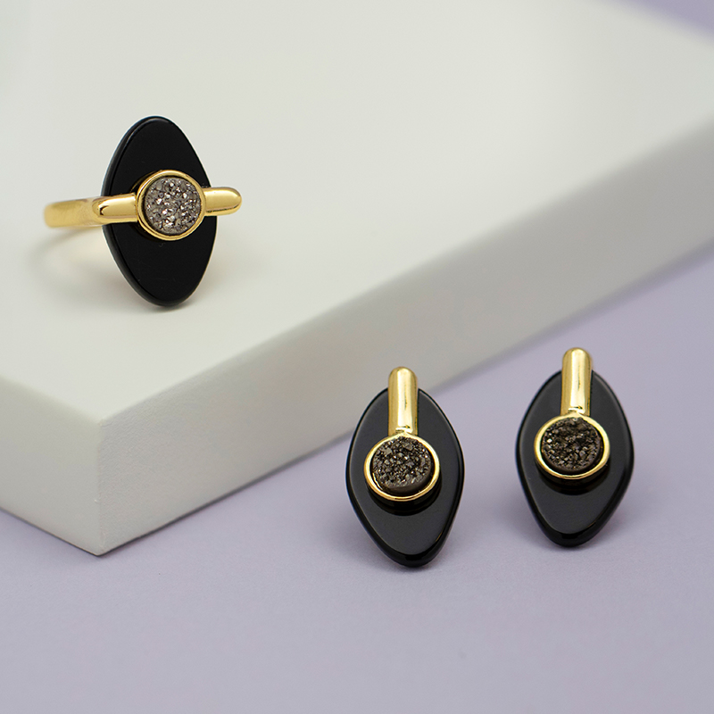 Tamanho das pedras: chapa 14x22mm e drusa redondo 6,5mm.